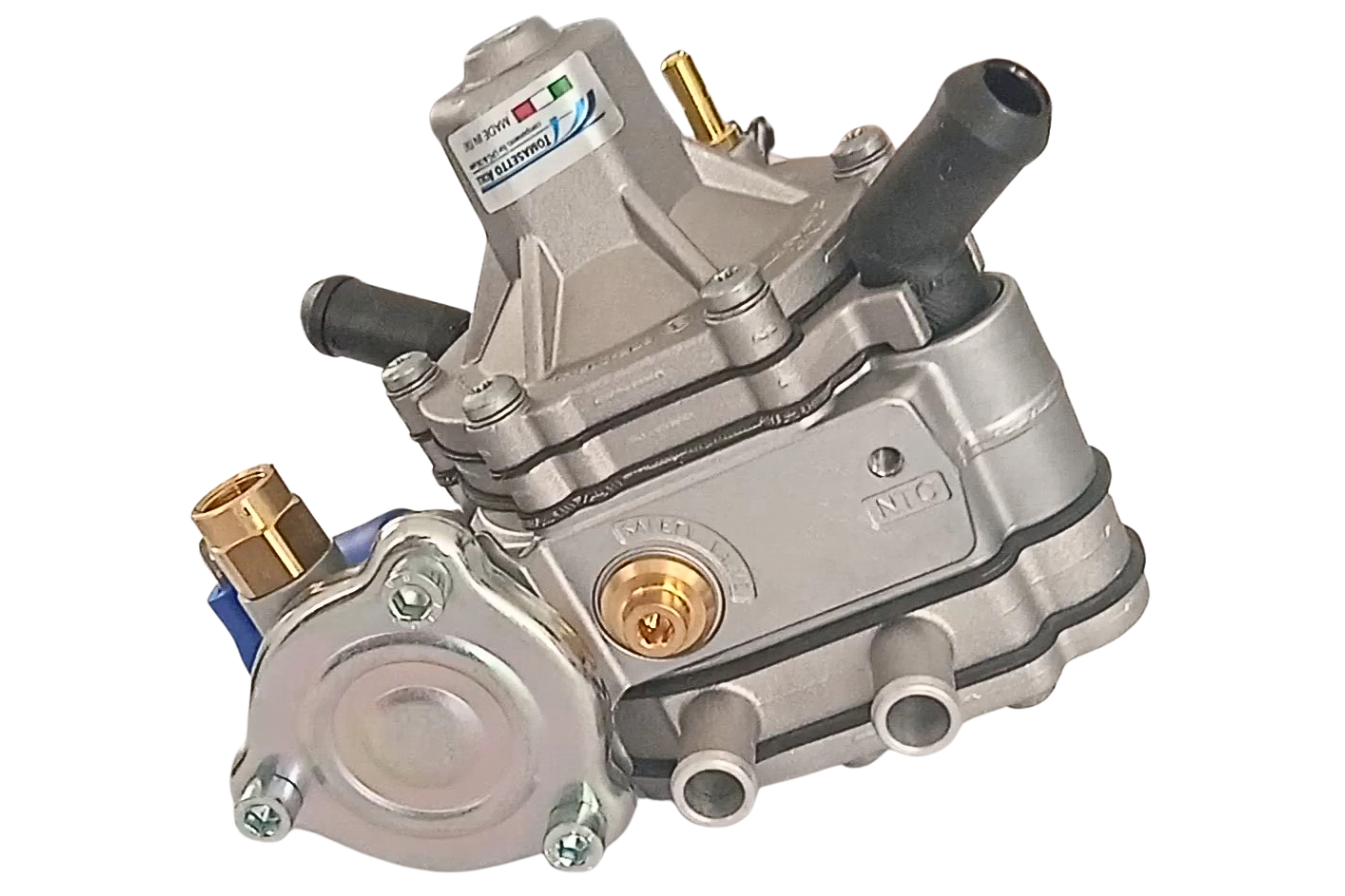 El reductor tiene una doble salida de gas, permitiendo las conexiones directas de 2 inyectores. Esta característica permite reducir las caídas de presión en el circuito, por lo que es adecuado para motores de mayor potencia. AT13 XP está equipado con un sistema de descarga interna de sobrepresión de válvula de seguridad a través de conexión MAP, por lo que no es necesario conectar una tubería adicional.